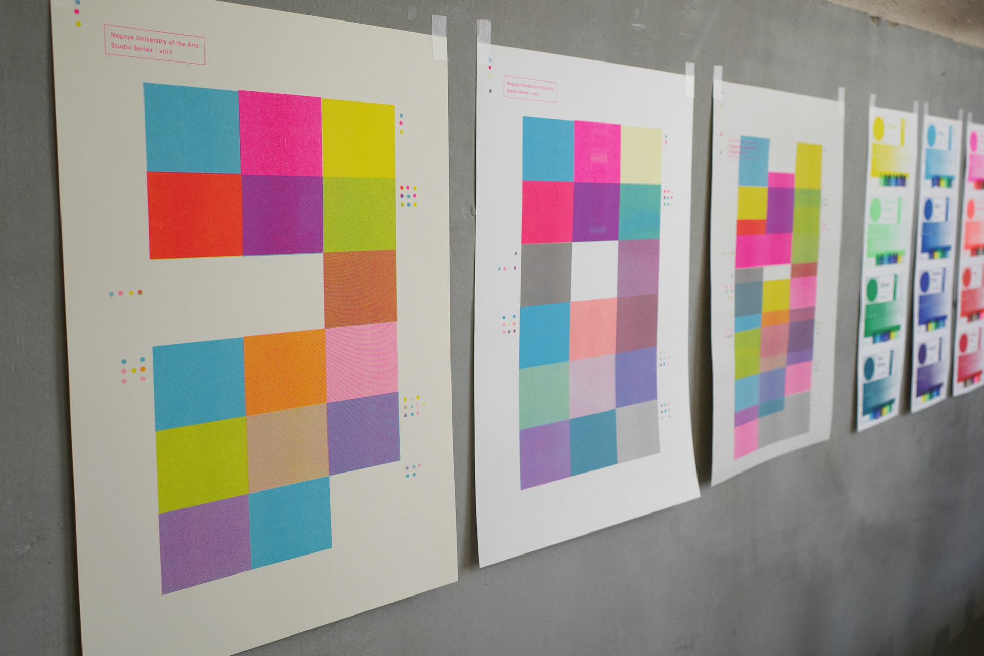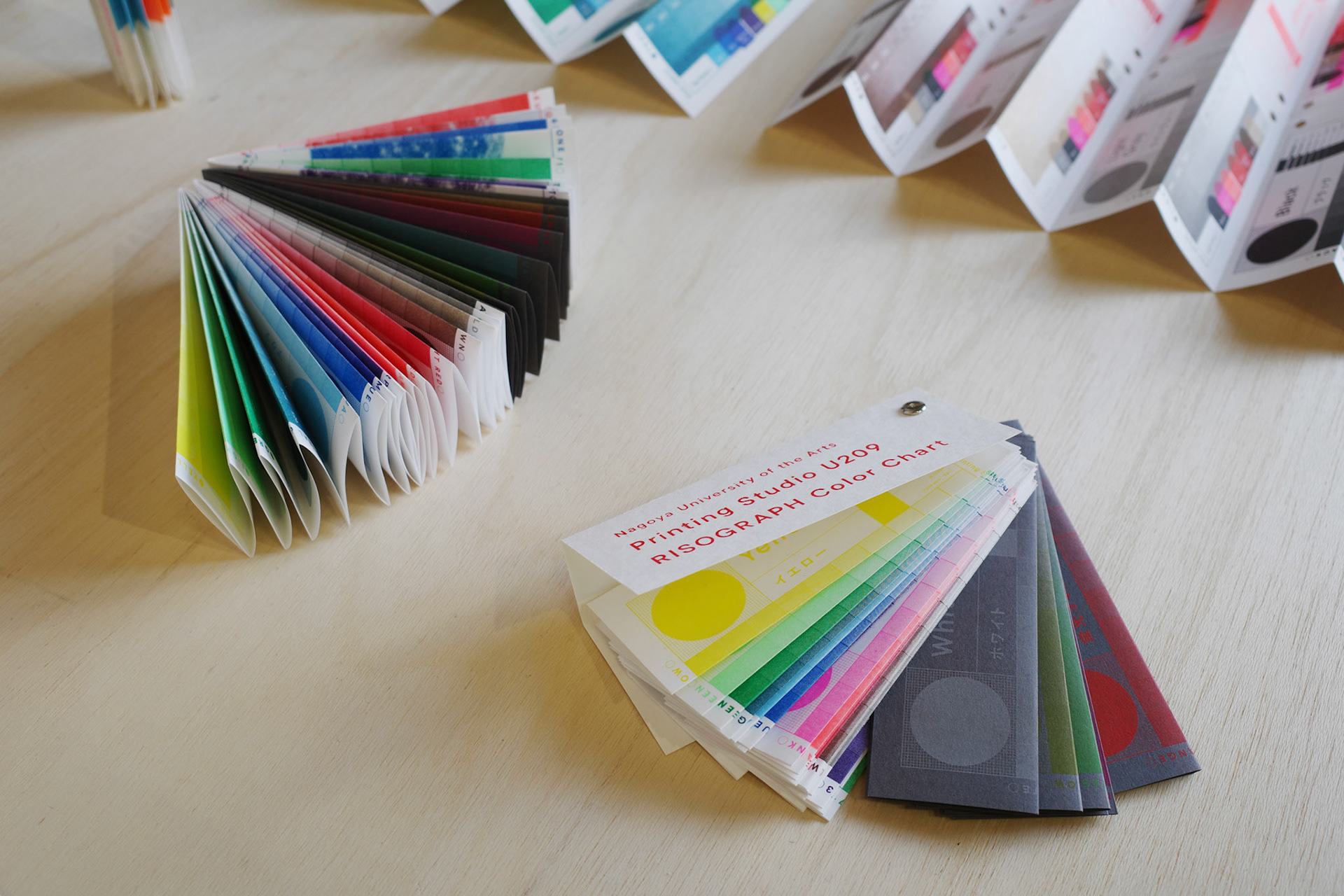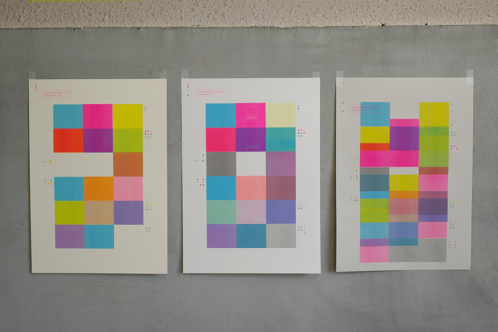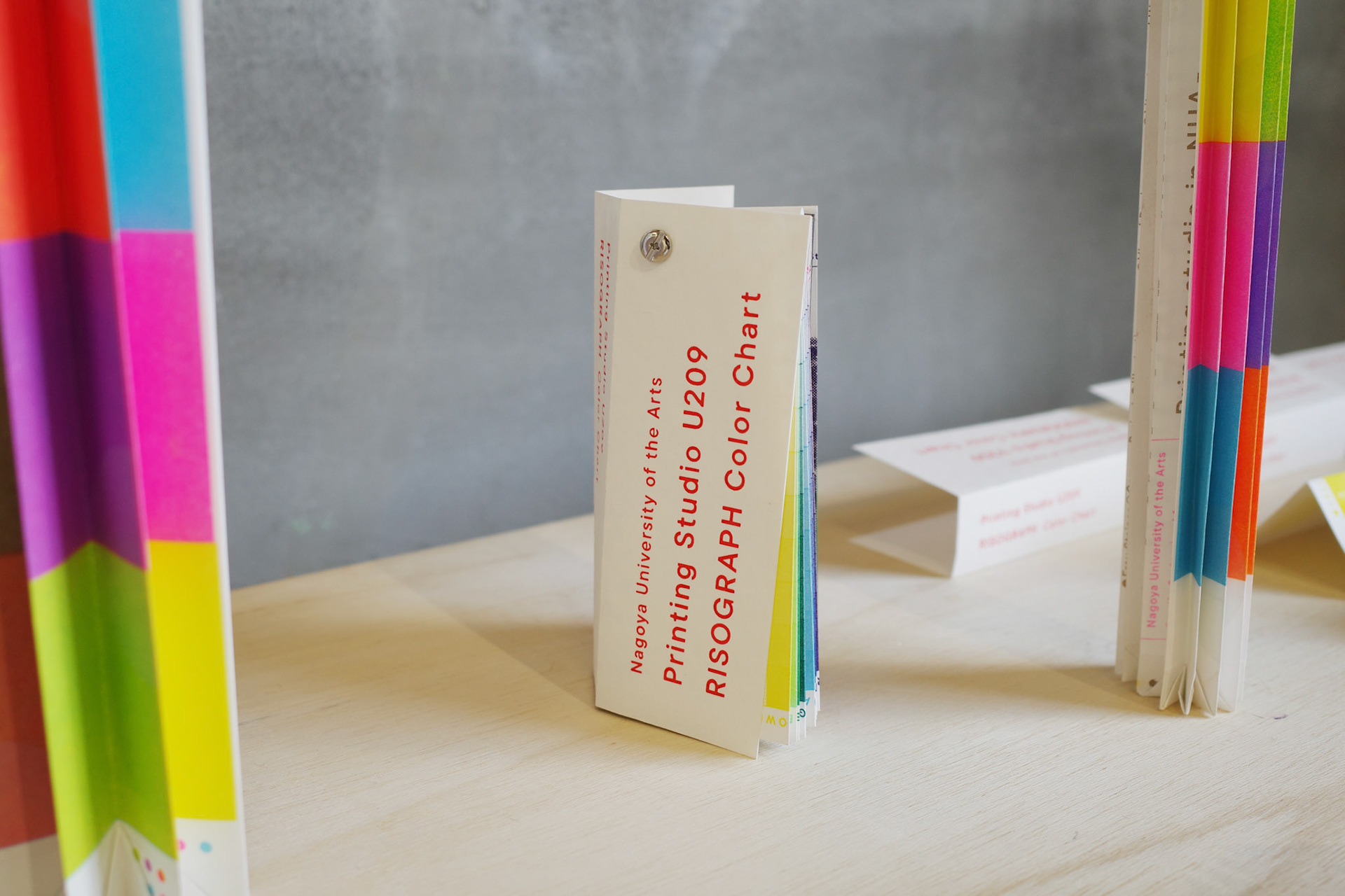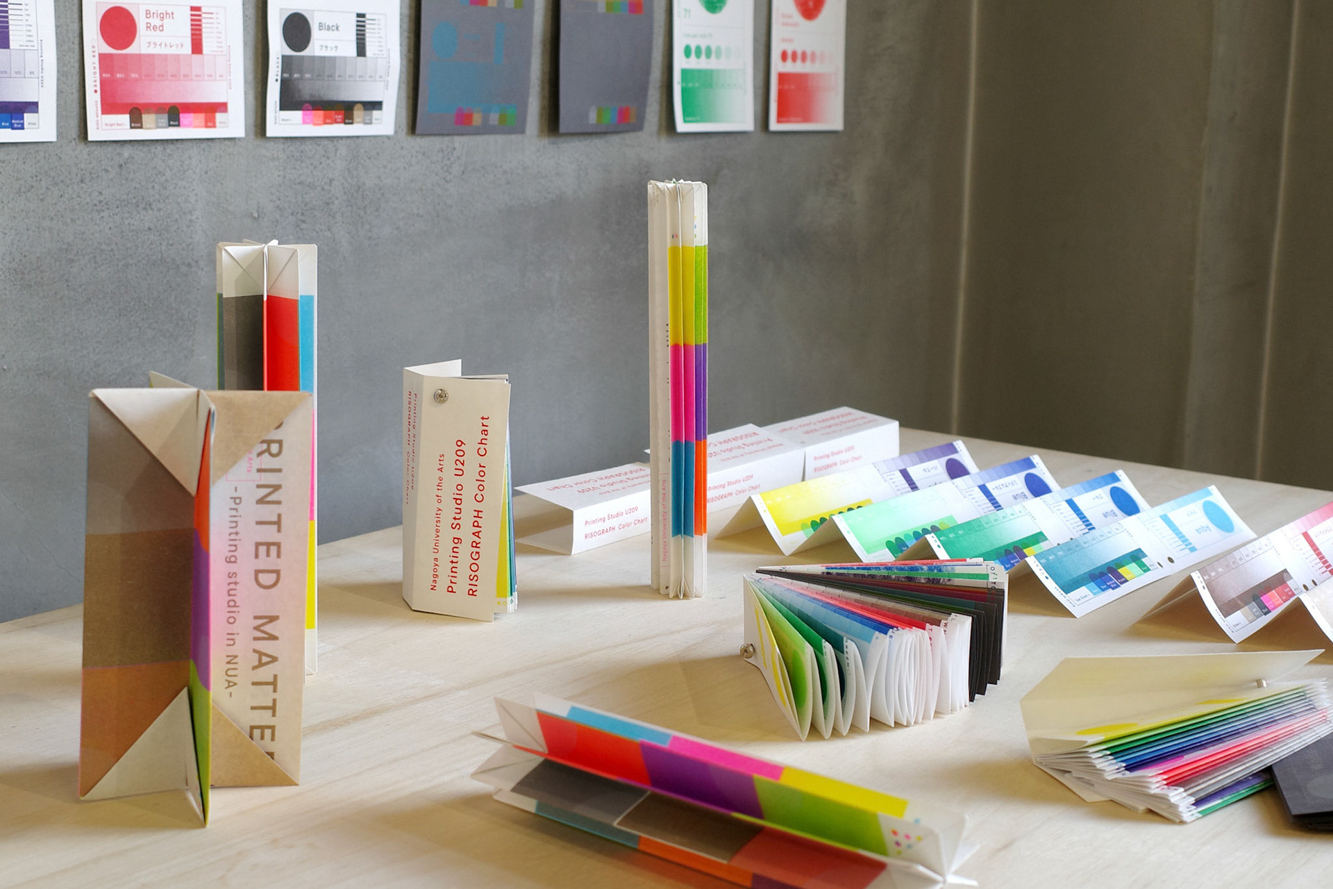 名古屋芸術大学 工房シリーズ vol.1 「PRINTED MATTER -Printing studio in NUA」フライヤーとリソグラフのカラーチャートをデザイン、展示しました。