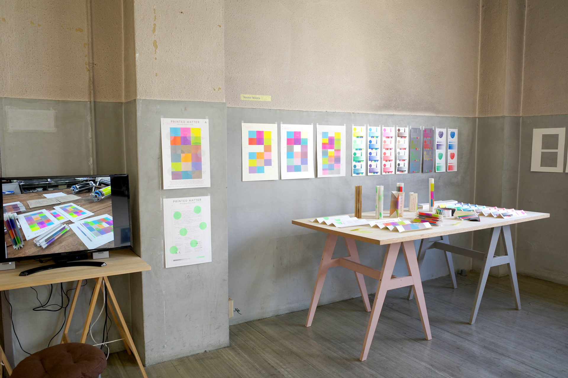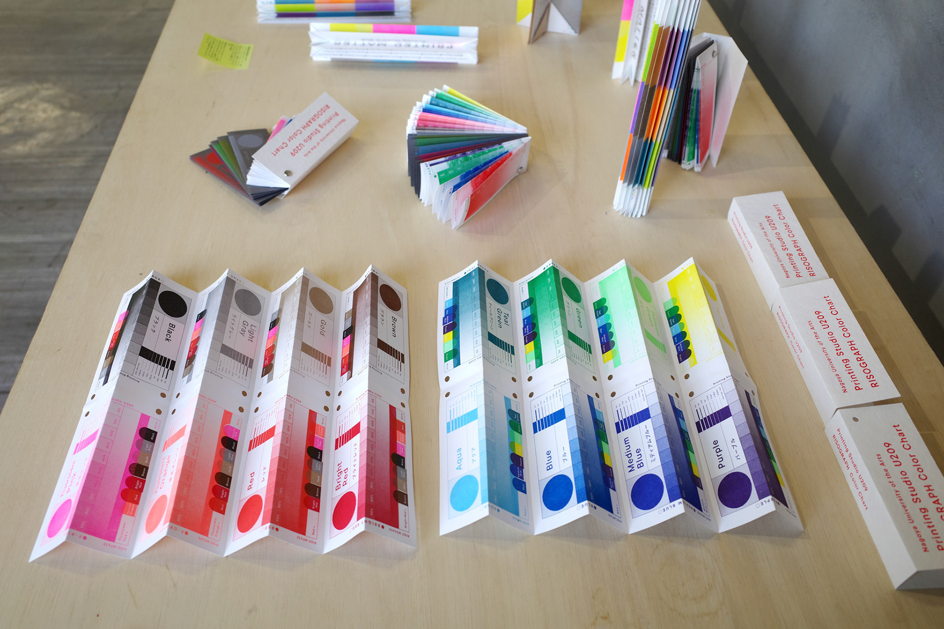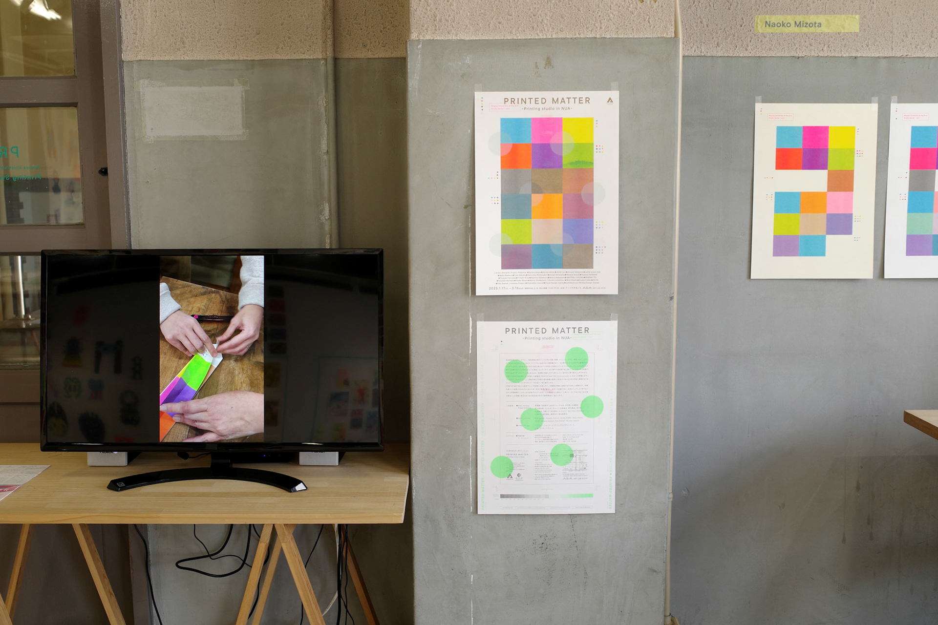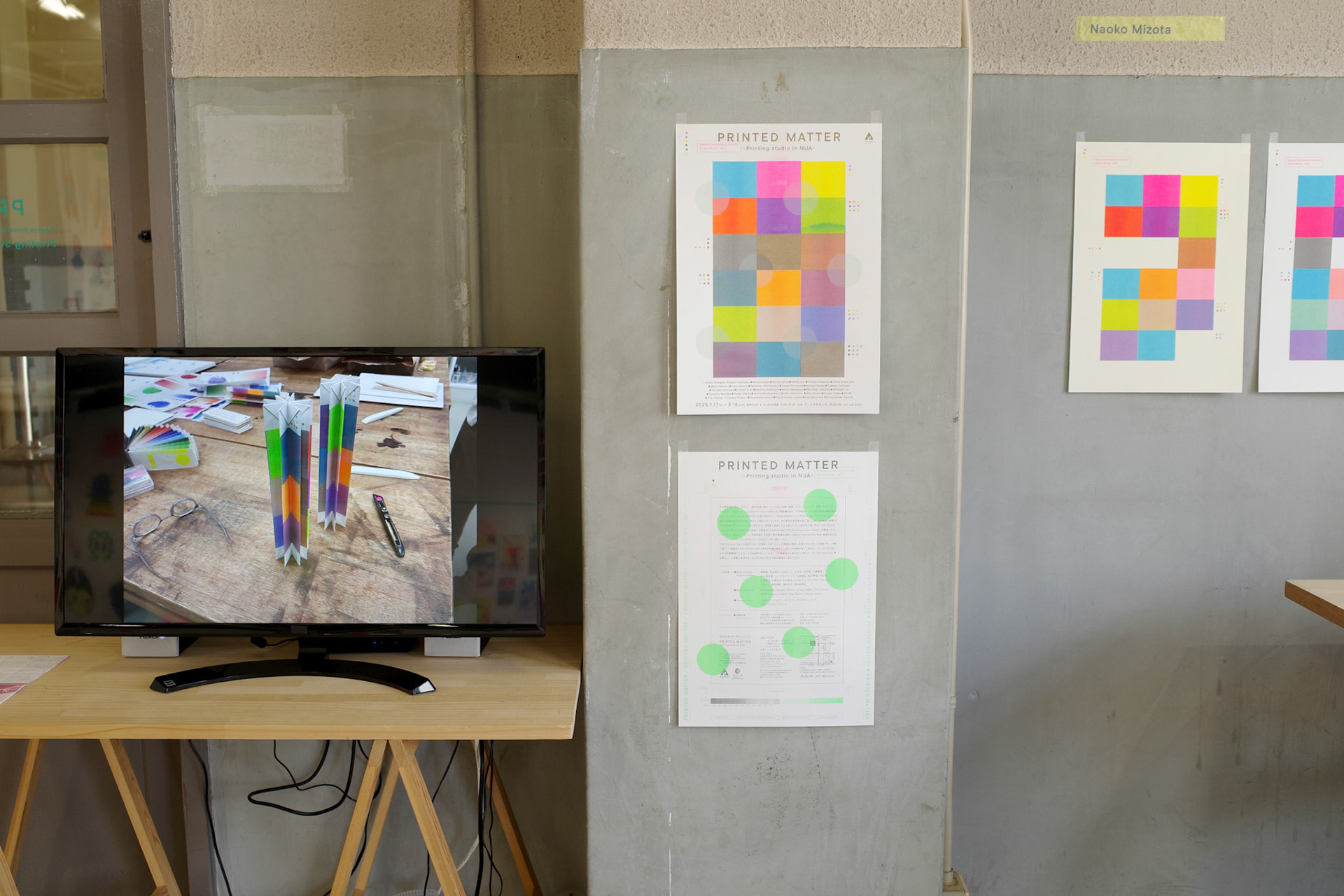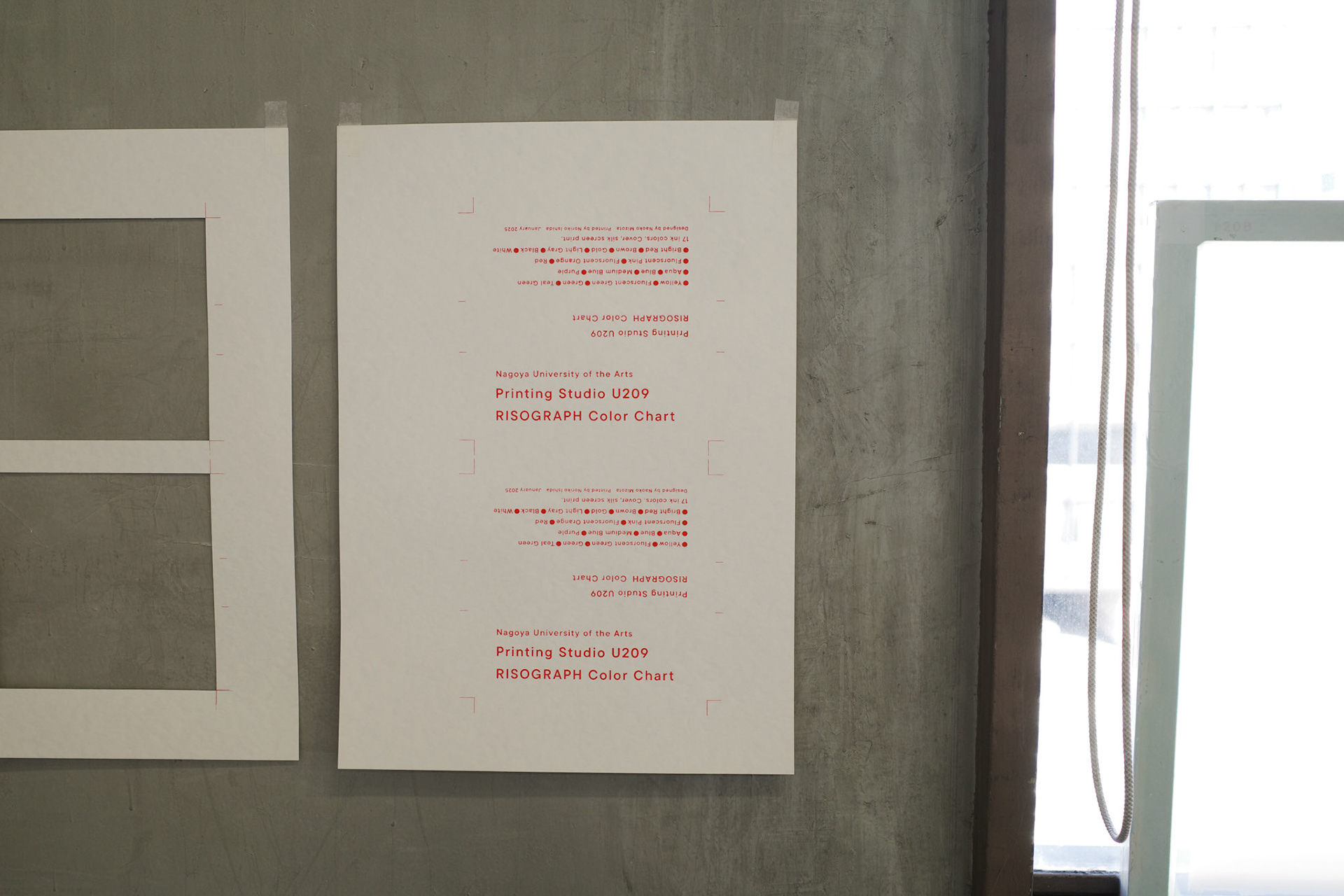 名古屋芸術大学 工房シリーズ vol.1 「PRINTED MATTER -Printing studio in NUA」フライヤーとリソグラフのカラーチャートをデザイン、展示しました。