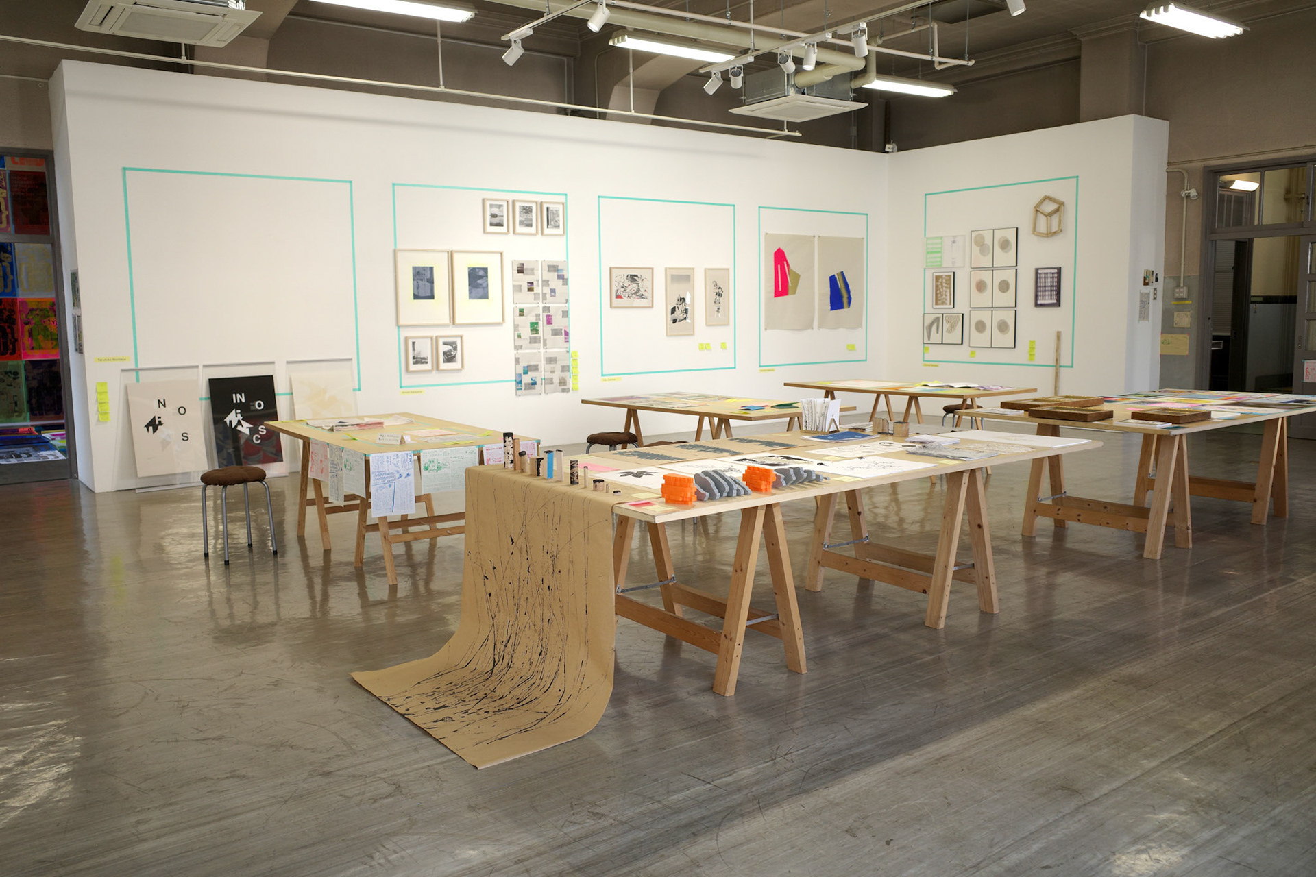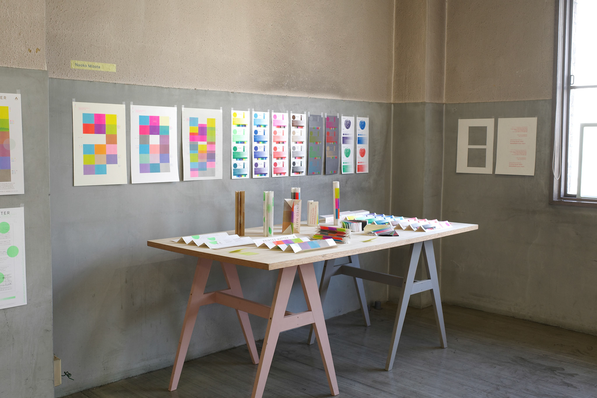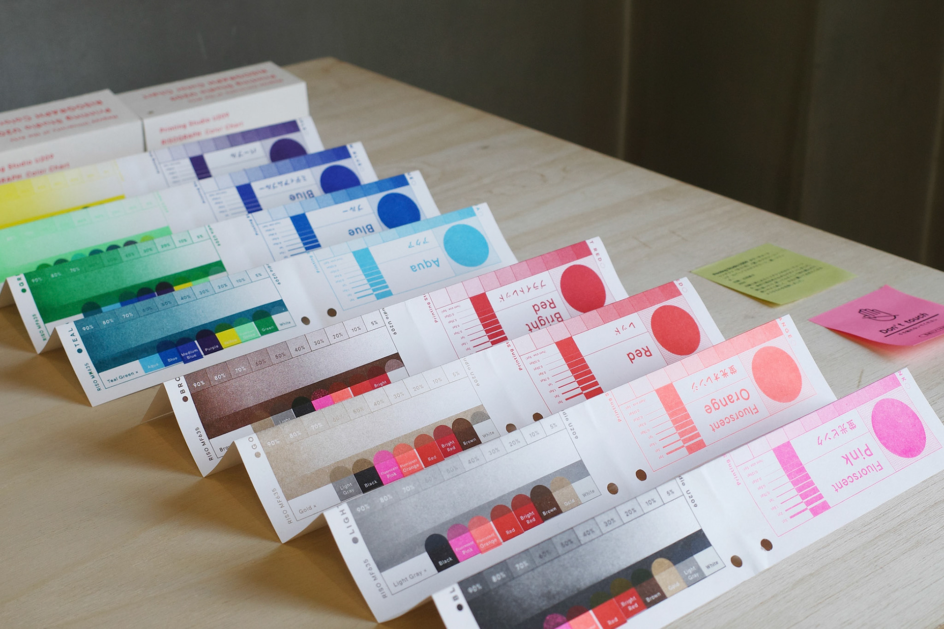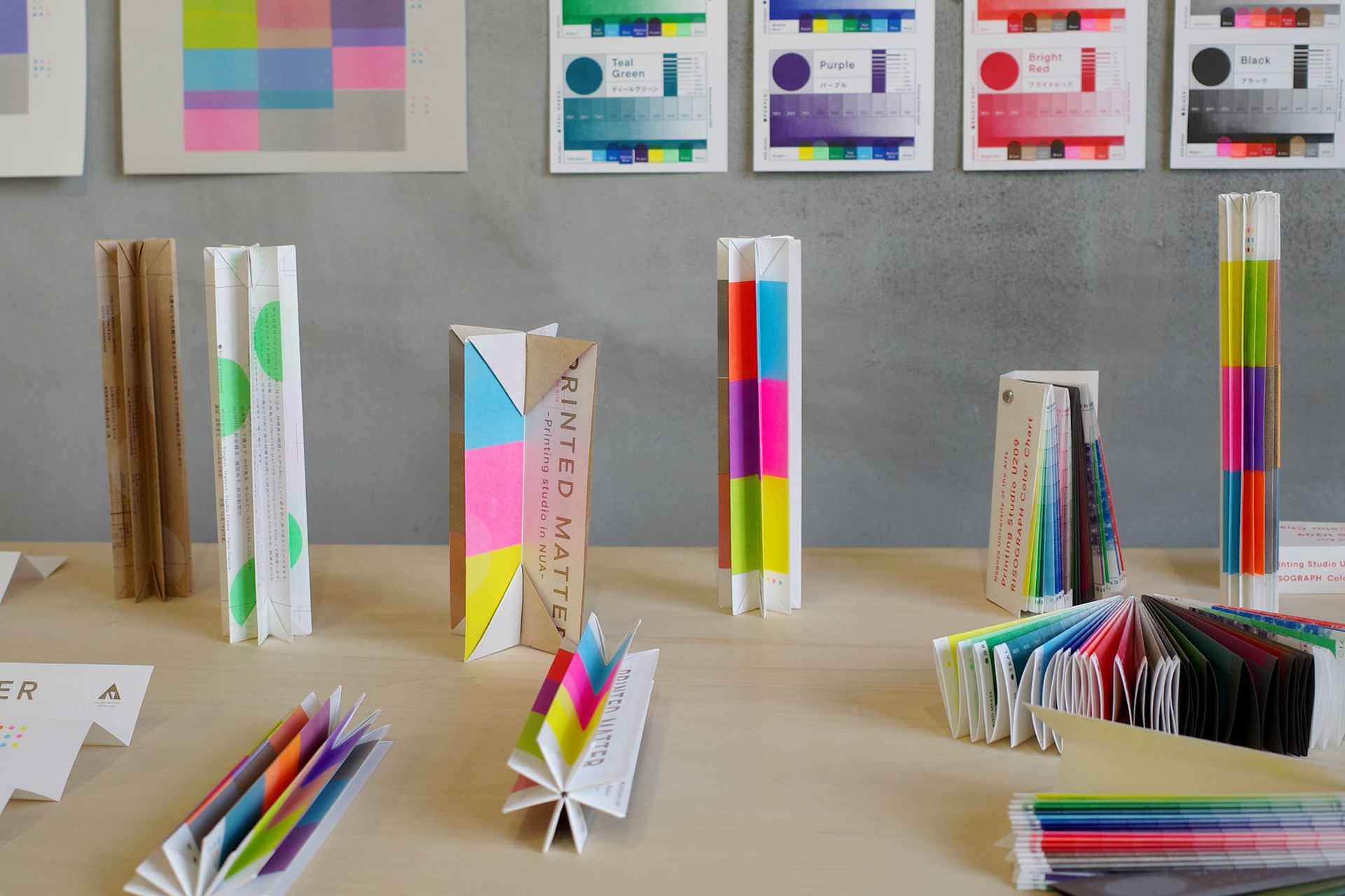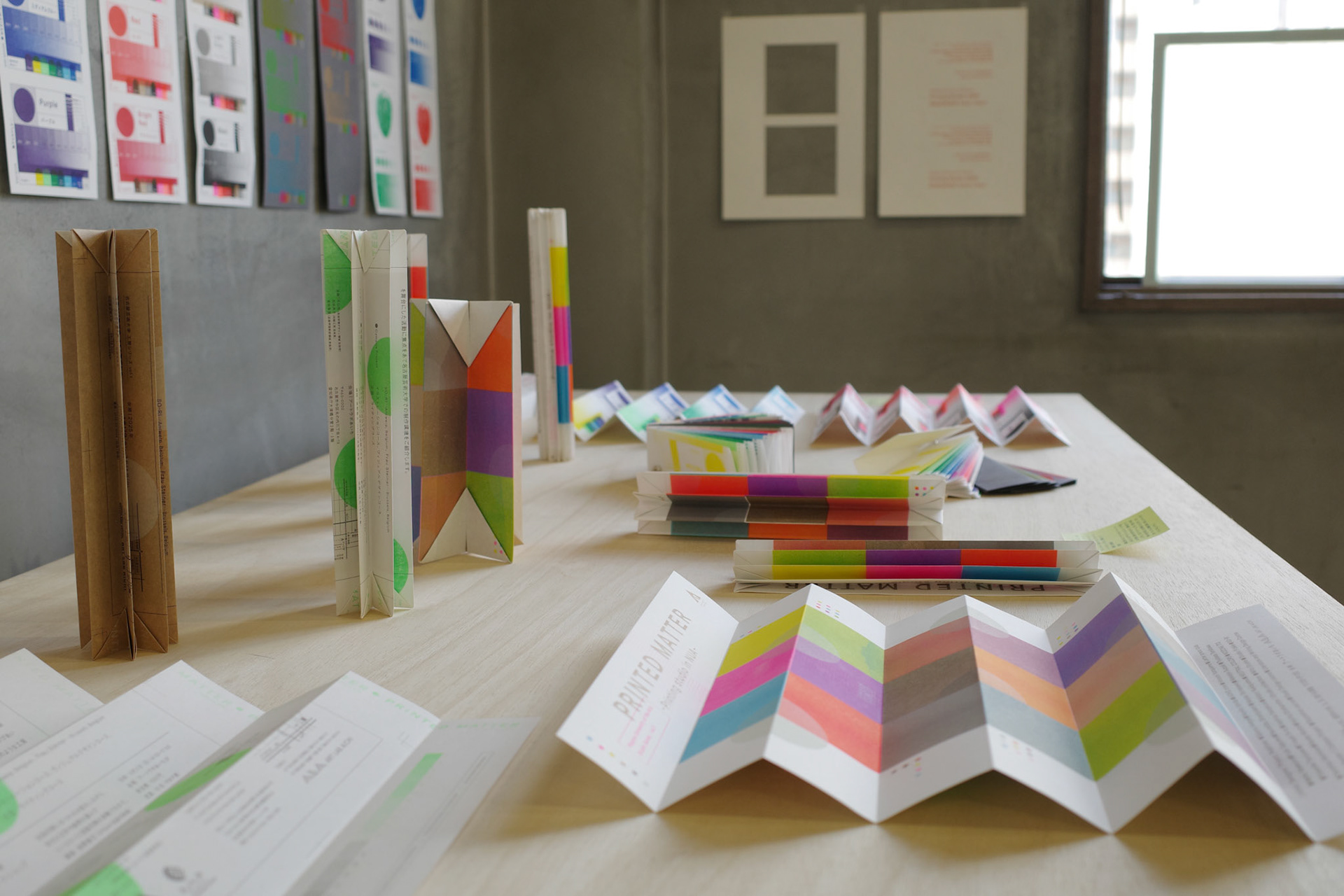 名古屋芸術大学 工房シリーズ vol.1 「PRINTED MATTER -Printing studio in NUA」フライヤーとリソグラフのカラーチャートをデザイン、展示しました。